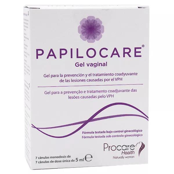 Procare Health Papilocare Gel Vaginal 7x5ml pour soin intime, permettant de former une barrière défensive dans la zone de transformation cervico-vaginale pour la prévention et le traitement des lésions provoquées par le papillomavirus (HPV).