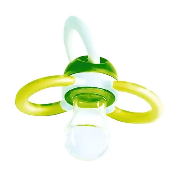 Il ciuccio ciuccio un ciuccio che rispetti perfettamente lo sviluppo della bocca del bambino, molto ariosa e dispone di un anello al fine di fissare un ciuccio clip.