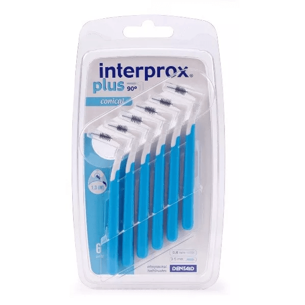 Interprox pi conica (blu) nuovi pennelli INTERPROX PLUS consentono un'efficiente rimozione di placca dentale, spazi tra i denti, ma anche tra gli elementi degli apparecchi ortodontici, nei dintorni di impianti e protesi fisse, nel caso di diastemas e della forcazione sono disponibili in 5 modelli Super micro Micro Mini Conico Maxi testa angolata per raggiungere facilmente gli spazi interdentali e loro pulizia posizione perfetta controllo spazzola Maniglia lunga pi lunga vita Alta efficienza cappuccio protettivo per uso ambulatoriale per ogni pennello.Filamenti Tynex bianchi al rapporto possibile sanguinamento. Black Tynex filamenti per rivelare la placca batterica. asta di metallo in acciaio inox e ricoperti di plastica. Non danneggia gli impianti e non Nessuna sensibilit. presentazione: testina 6 Blister. non dimenticate... anche possibile utilizzare filo o nastro dentale Vitis Elimina la placca, se non c' abbastanza spazio tra i denti.Indications