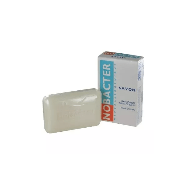 Appositamente adattato per pelle sensibile o problemi il Nobacter sapone deterge e purifica la pelle. Azione anti-batterica (Triclocarban 0,9%). Olio d "mandorle dolci (1%) + lanolina (1%) per idratare la pelle. Senza alcool. Senza tintura. pH alcalino = 8-10. Lascia la pelle idratata e sana.