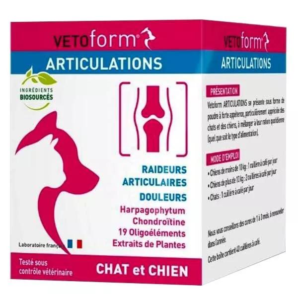 Vetoform giunti dog un integratore alimentare per dolori articolari, perdita di mobilit, reumatismi... La sua formula efficace, 100% naturale, 19 oligoelementi, piante anti-infiammatori e condroitina usato da solo o nella staffetta della terapia farmacologica in cure rinnovabili 1 a 3 mesi. Formare polvere appetibile, si mescola facilmente con la razione di cibo quotidiana.