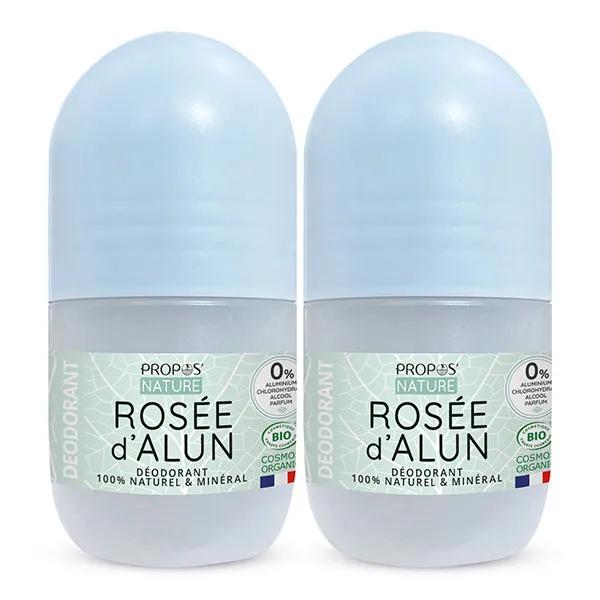 Propos'Nature - Deodorante Rosée d'Alum Biologico - 2 roll-on da 50 ml è un deodorante certificato biologico, arricchito con pietra di allume 100% minerale, Aloe vera, idrolati di rosa e fiori d'arancio, dall'efficacia naturale.