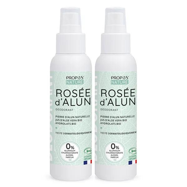 Propos'Nature - Deodorante Rosée d'Alum - 2 spruzzi da 100 ml è un deodorante certificato biologico, arricchito con pietra di allume minerale al 100%, Aloe vera, idrolati di rosa e fiori d'arancio, e dall'efficacia naturale.