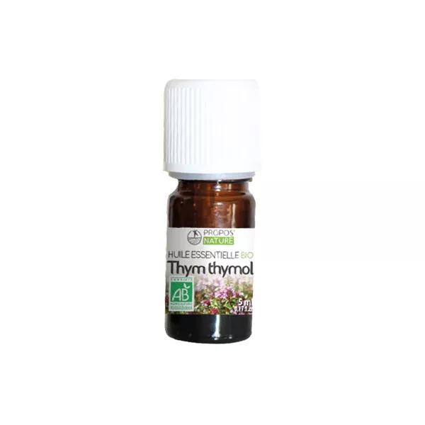 L'huile essentielle Bio Thym Thymol du laboratoire Propos'Nature vous envoutera avec son parfum herbacée, épicée et aromatique qui en fait une huile idéale et présente dans toutes les astuces de grand mère. Cette huile essentielle est 100% pure et naturelle et est issu de l'agriculture biologique.