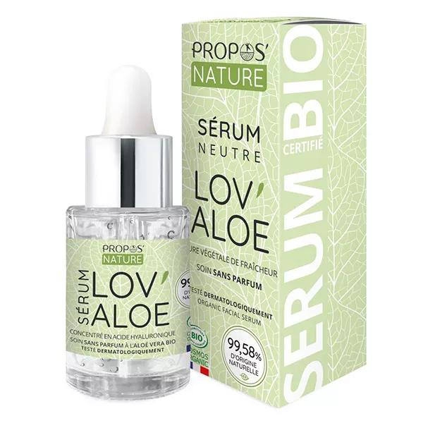 Formulé avec du jus de filet frais d’Aloe Vera, le sérum Lov’Aloe Bio est un soin à la fois hydratant et anti-âge. Très concentré en acide hyaluronique (3%) de bas poids moléculaire pour son action anti-âge et de haut poids moléculaire pour son action hydratante, il est idéal pour les peaux sèches et matures. Composé avec plus de 99% d’ingrédients d’origine naturelle, le Sérum Lov’Aloé Bio offre une texture fluide, légère et douce qui rend son application agréable.
