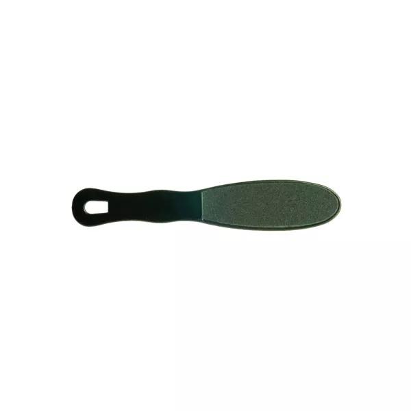 Un tête support de limes, longue, plate et légèrement ovale, à double face, munie sur chaque face d'un revêtement abrasif :