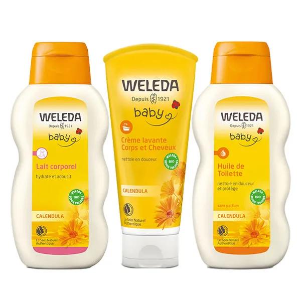 - ImballaggioWeleda Baby Calendula Shampoo e Doccia 200 ml: 1 tubetto da 200 ml. Weleda Baby Calendula Lozione Corpo Biologica 200 ml: 1 flacone da 200 ml. Weleda Baby Calendula Olio Detergente Biologico 200 ml: 1 flacone da 200 ml.