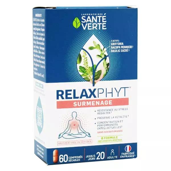 Descrizione ico-chevron-down Santé Verte Relaxphyt Surmenage 60 comprimés est un complément alimentaire du laboratoire Santé Verte, à base de bacopa monnieri, de basilic sacré et de griffonia.
