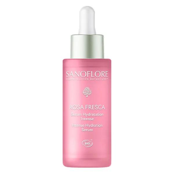 Sanoflore Rosa Fresca Intense Hydration Serum - 30 mlè altamente concentrato in idrolato di Rosa Damascena biologica, garantendo un'idratazione profonda e duratura fino a 8 ore.