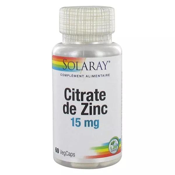 Descrizione ico-chevron-down Solaray Citrate de Zinc 15mg 60 capsules végétales est un complément alimentaire à base de zinc et pépins de courge.