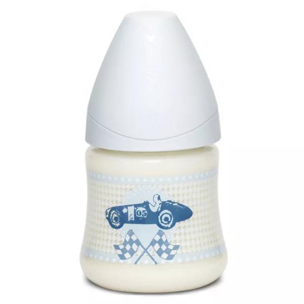Suavinex Biberon Silicone Fisiologico Macchina Bandiera Blu Flusso Medio 0-6m 150ml