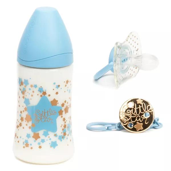 Suavinex Pack Couture Biberon 270ml + Ciuccio 0-4m + Attacca Ciuccio Blu