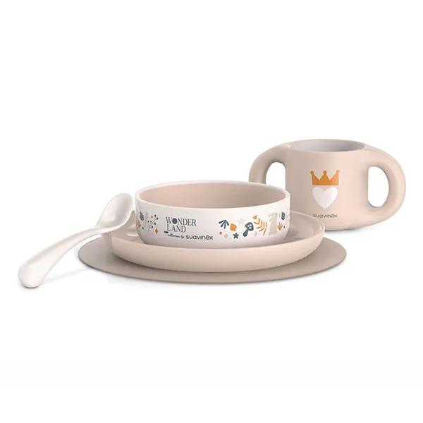 La vaisselle bébé +6m de la collection Wonderland de Suavinex est parfaite pour accompagner votre bébé dans sa transition du biberon à la cuillère, l'aidant à développer son autonomie en matière d'alimentation de manière amusante et adaptée à ses besoins.