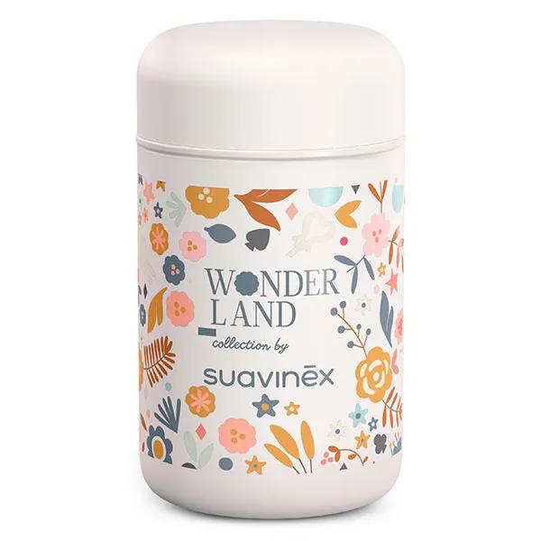 Capacità 400 ml: ideale per il trasporto di puree e pappe. Mantiene la temperatura fino a 6 ore: perfetto per pasti caldi e freddi. Acciaio inossidabile di alta qualità: non trattiene odori o sapori ed è durevole. Coperchio ermetico: la vite garantisce sicurezza e igiene durante il trasporto. Impugnatura comoda: lo strato interno impedisce che l'esterno si surriscaldi o si raffreddi. Facile da pulire: si consiglia il lavaggio a mano con sapone diluito in acqua tiepida. Età consigliata: adatto a bambini da 0 a 36 mesi. Collezione Wonderland: parte della collezione elegante e pratica di Suavinex.