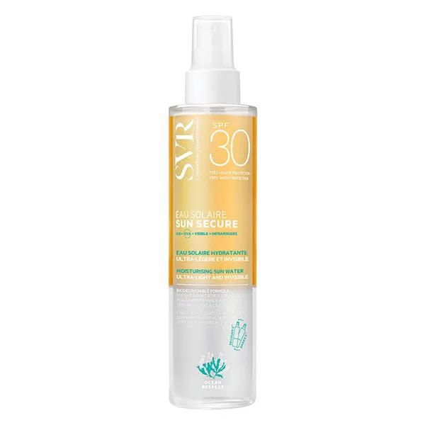 SVR Sun Secure Eau Solaire SPF30 - 200ml offre une haute protection dermatologique intégrant cette nouvelle association de filtre brevetée(1) respectueuse de l’environnement marin.
