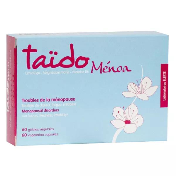 Descrizione ico-chevron-down Taïdo Menoa 60 gélules est un complément alimentaire du laboratoire Elerte à base de Magnésium marin, de Vitamine B6 et d'extrait de Rhizome de Cimicifuga.