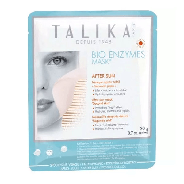 Talika Bio Enzimi Maschera Doposole è la prima maschera doposole in cellulosa, tipica delle tecniche di rigenerazione cutanea.