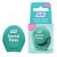 Milieuvriendelijke tandzijde, gemaakt van gerecyclede flessen en gekleurd met avocadowas. Rekbare tandzijde die zich aanpast aan alle ruimtes tussen de tanden.