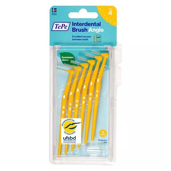 Les brossettes interdentaires TePe sont disponibles en plusieurs tailles (certifiées ISO), modèles et types de brins. Elles sont fabriquées en Suède. La gamme TePe Angle présente une tête coudée pour un accès plus facile sur l'arrière de la bouche.