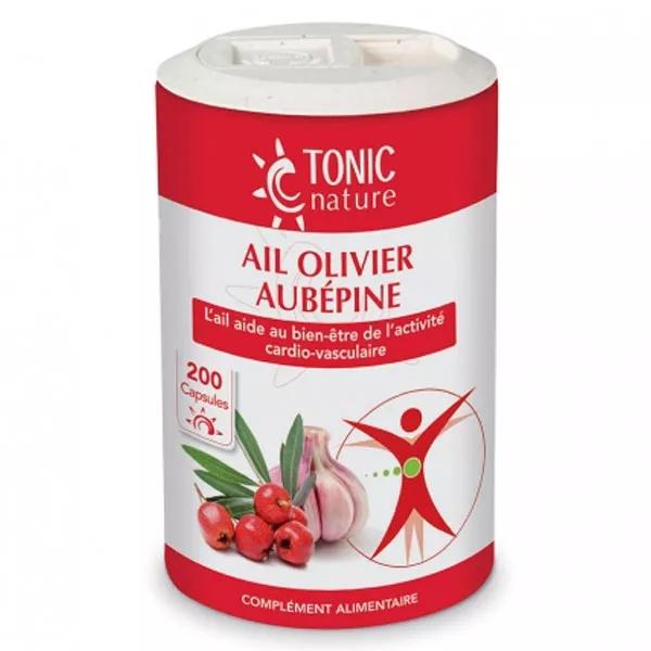Descrizione ico-chevron-down Ail Olivier Aubépine 200 Capsules est un complément alimentaire du laboratoire Tonic Nature à base de macérat d'Ail frais, d'extrait sec d'Aubépine et d'extrait sec d'Olivier.