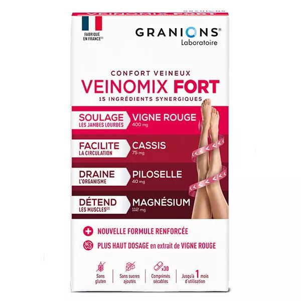Les comprimés Veinomix FORT Confort Veineux, contiennent 13 actifs hautement dosés qui contribuent à améliorer le confort veineux, favoriser une bonne circulation sanguine, aider au bon fonctionnement musculaire et protéger contre le stress oxydatif. Formulés avec des plantes, vitamines et oligoéléments de haute qualité pour apporter légèreté, confort et bien-être aux jambes.
