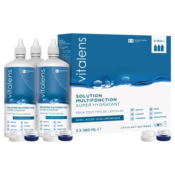 Vitalens a développé une solution de nettoyage multifonction pour lentilles souples. Cette solution isotonique stérile et tamponnée permet d'entretenir les lentilles, mais aussi de préserver la santé de vos yeux.