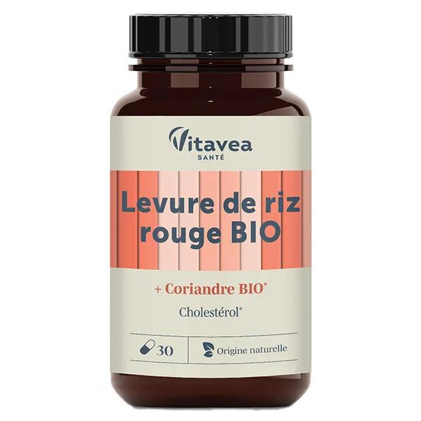 Vitavea Les Essentiels Cholestérol Levure de riz rouge et Coriandre Bio - 30 gélules est un champignon microscopique cultivé sur le riz, est une source riche en monacolines.